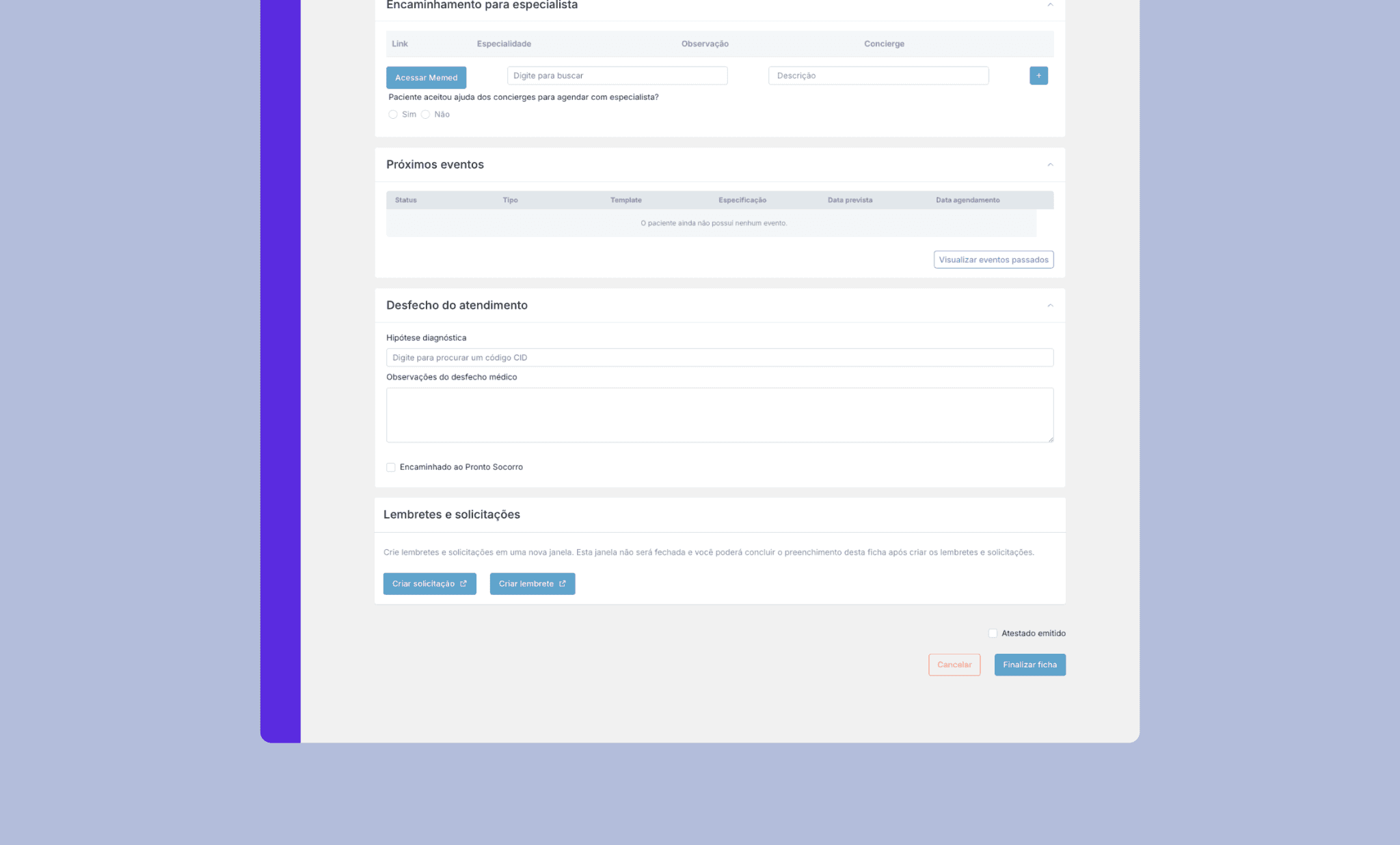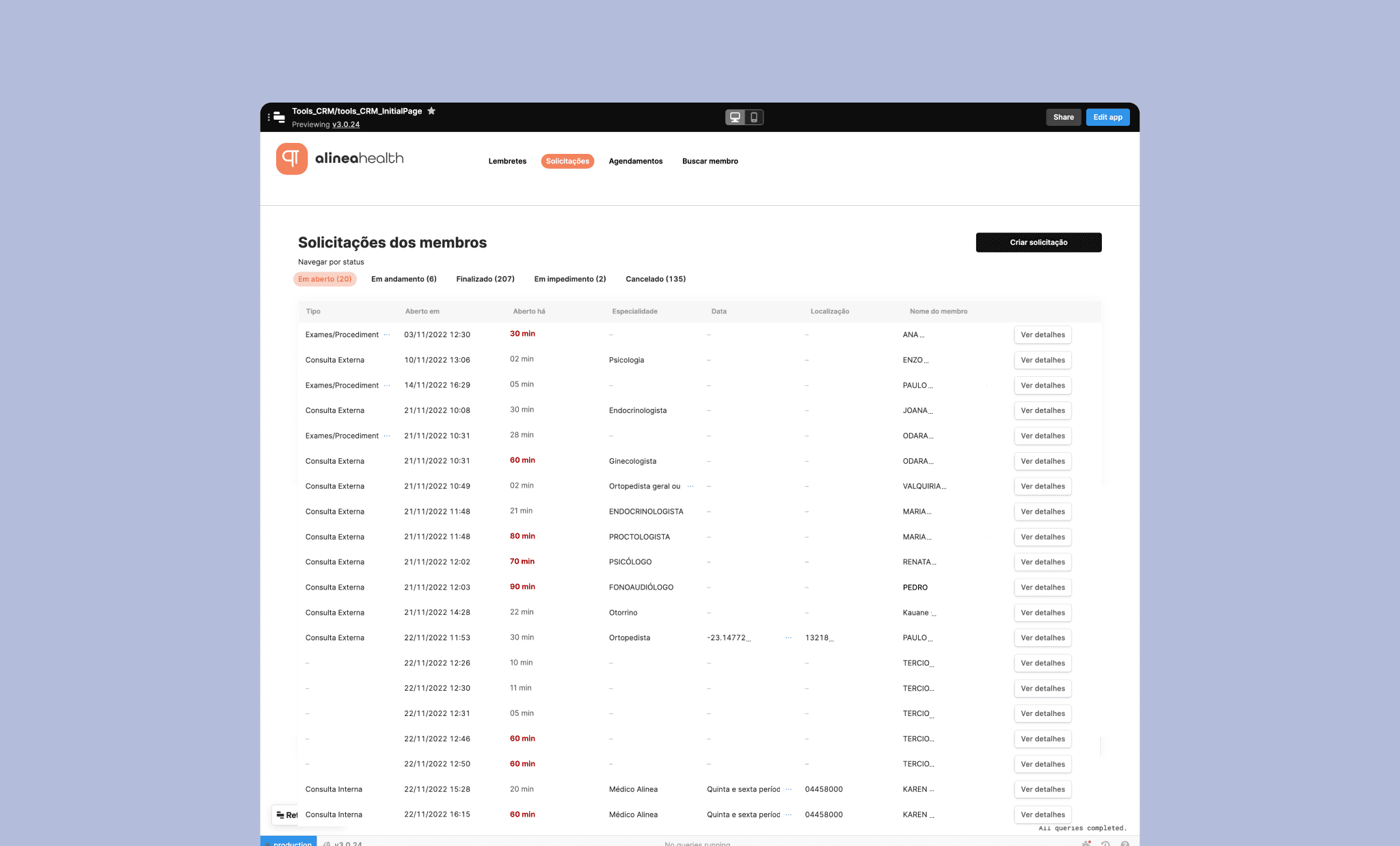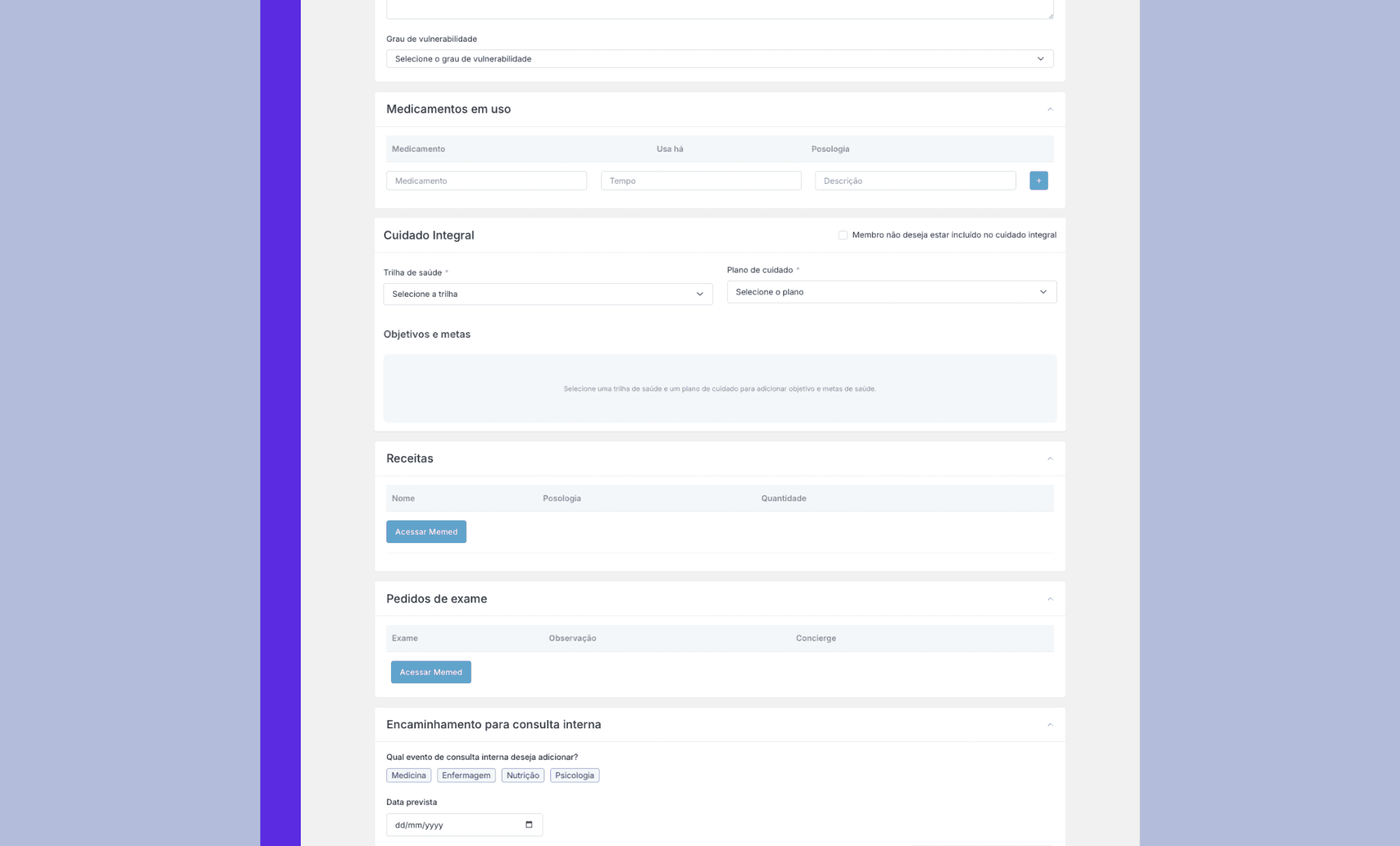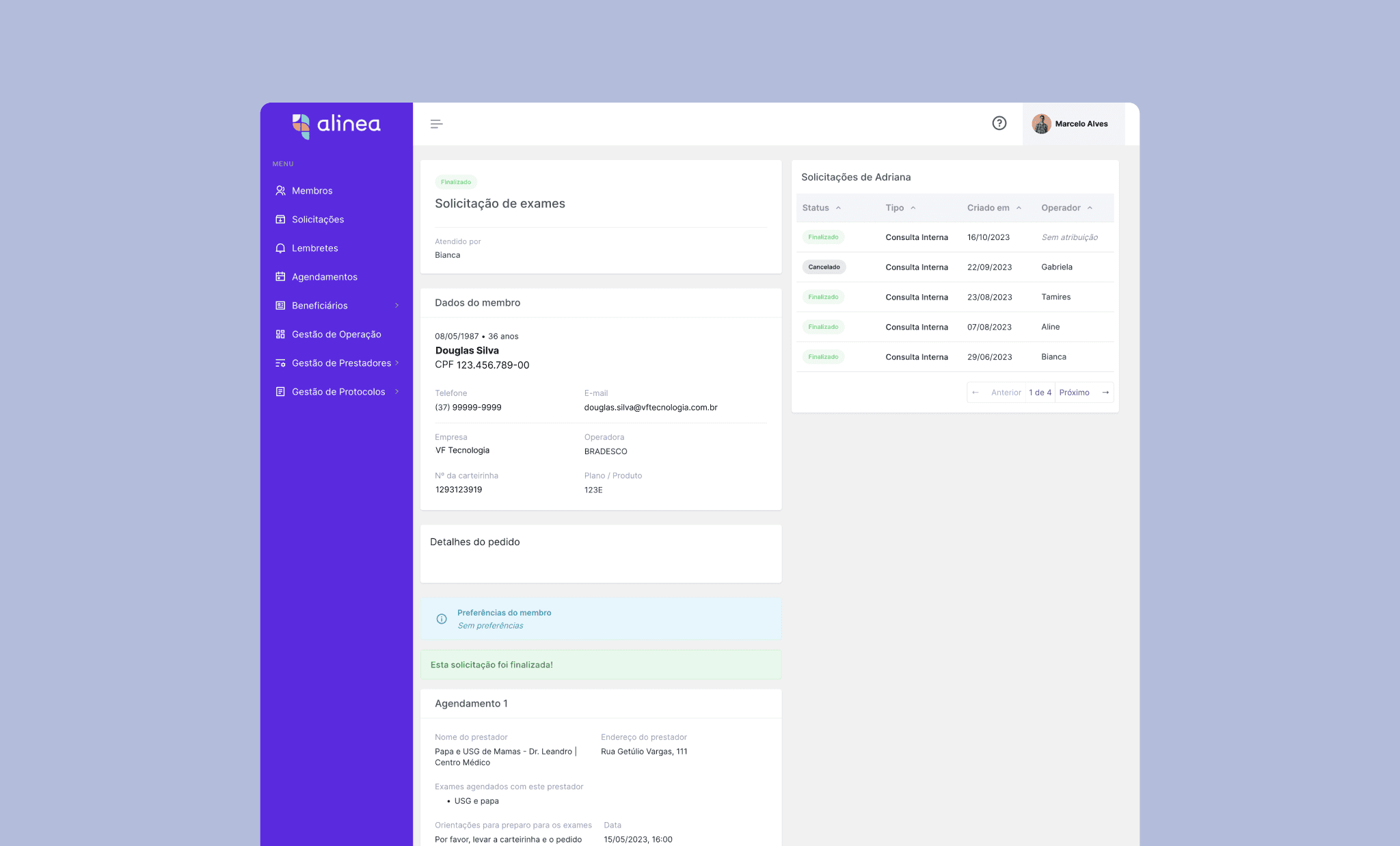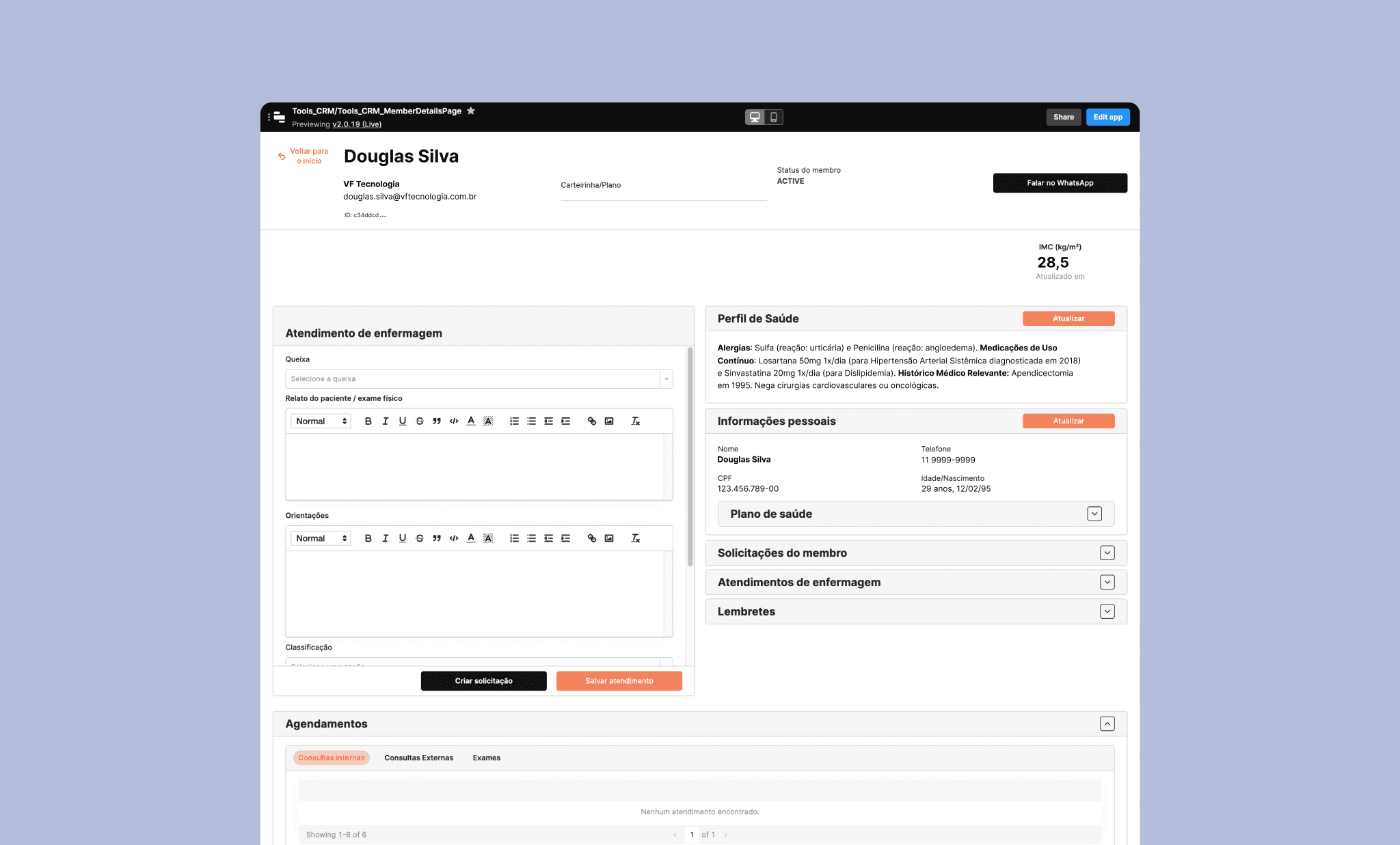 Alinea Backops in its low-code version, with limited experience and scalability. Then, one among the several user flows created, along with screenshots of the clinical medical record and the member request-management system. Solutions that improved satisfaction and efficiency for our concierge and clinical teams.